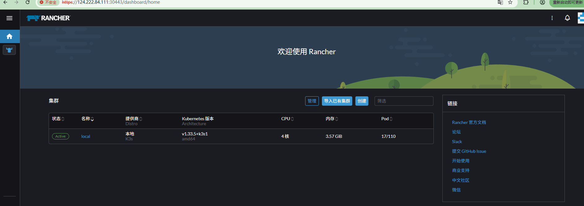 一切正常后,试试访问rancher看看,在访问前,需要看看是否创建了ingress供我们访问