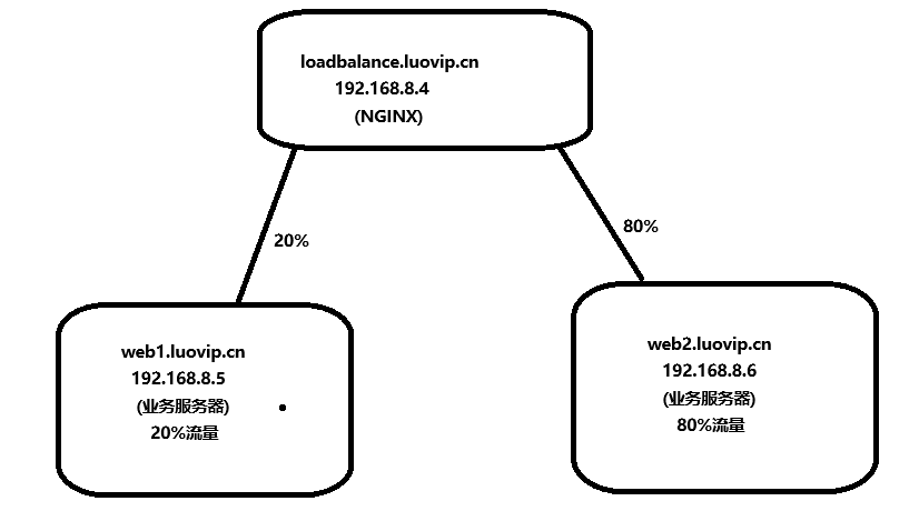 1.web1.luovip.cn (IP: 192.168.8.5),接收20%的流量。