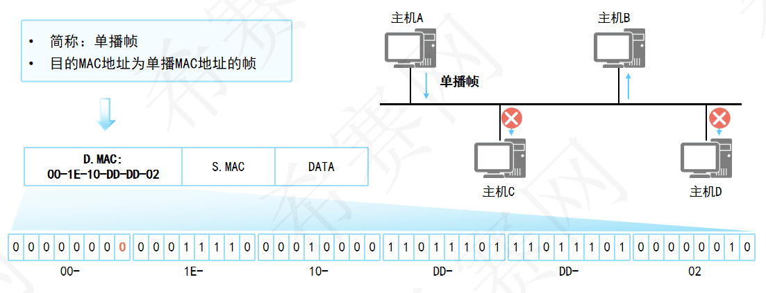 交换机在MAC地址表中查到了这个帧的目的MAC地址,但是表中对应的端口编号是该帧从传输介质进入交换机的那个端口编号,则交换机对该单播帧执行丢弃操作。