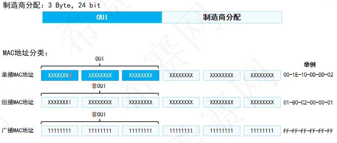 OUl (Organizationally Unique Identifier):厂商代码,由IEEE分配,3 Byte, 24 bit。