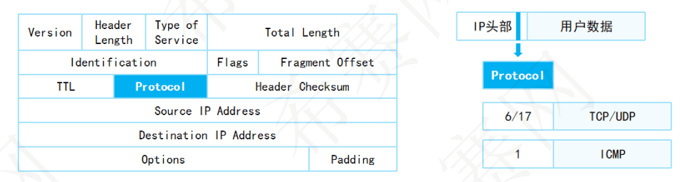 指出此数据包携带的数据使用何种协议,以便目的主机的IP层将数据部分上报给哪个进程处理。