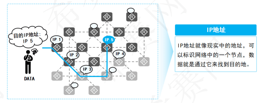 IP地址在网络中用于标识一个节点(网络设备的接口)。
